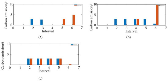 Compared with the unified carbon price, the tiered carbon price is more suitable for the small carbon emission region and can reduce the carbon emission operating cost, for which the tiered carbon emission model is adopted [35]. The limits of carbon emission in each interval are shown in Equation (30). In particular, carbon emission trading in the 0th interval is 0. Constraint (31) refers to the balance of quota carbon trading within the whole interval.