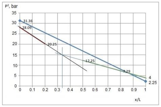 The greatest number of accidents is created on the linear part of gas pipelines. In addition to blockage of the gas pipeline as a result of the formation of hydrates, freezing of water plugs, etc., leaks are possible. The location of damage to the linear part of the gas pipeline can be determined using the “three points” method: the line of change in the square of pressure is built from pressure measurements, and the place of its rupture will indicate a gas leak or damage to the pipeline. However, only major damage to the gas pipeline can be detected in this way. The accuracy of the «three points» method is not high and is completely determined by the accuracy of graphic constructions (Figure 2).