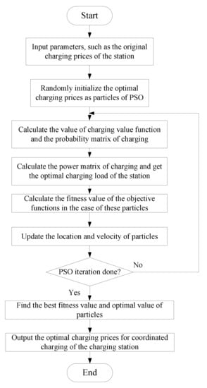 The solution of the optimization is the daily charging service prices with the maximum dimension 24 × 1, and for each dimension, the solution is a real number within the range of zero to the upper limit of the charging service fee defined in Equation (24). The lower dimensions and limited solution space will result in small computational cost, which makes PSO qualified for the pricing optimization. It should be noticed that the proposed pricing method is mainly used for day-ahead or same-day pricing, and can be used for ultra-short term pricing.
