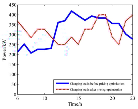 Thus, the total charging loads of the charging station after pricing optimization is: