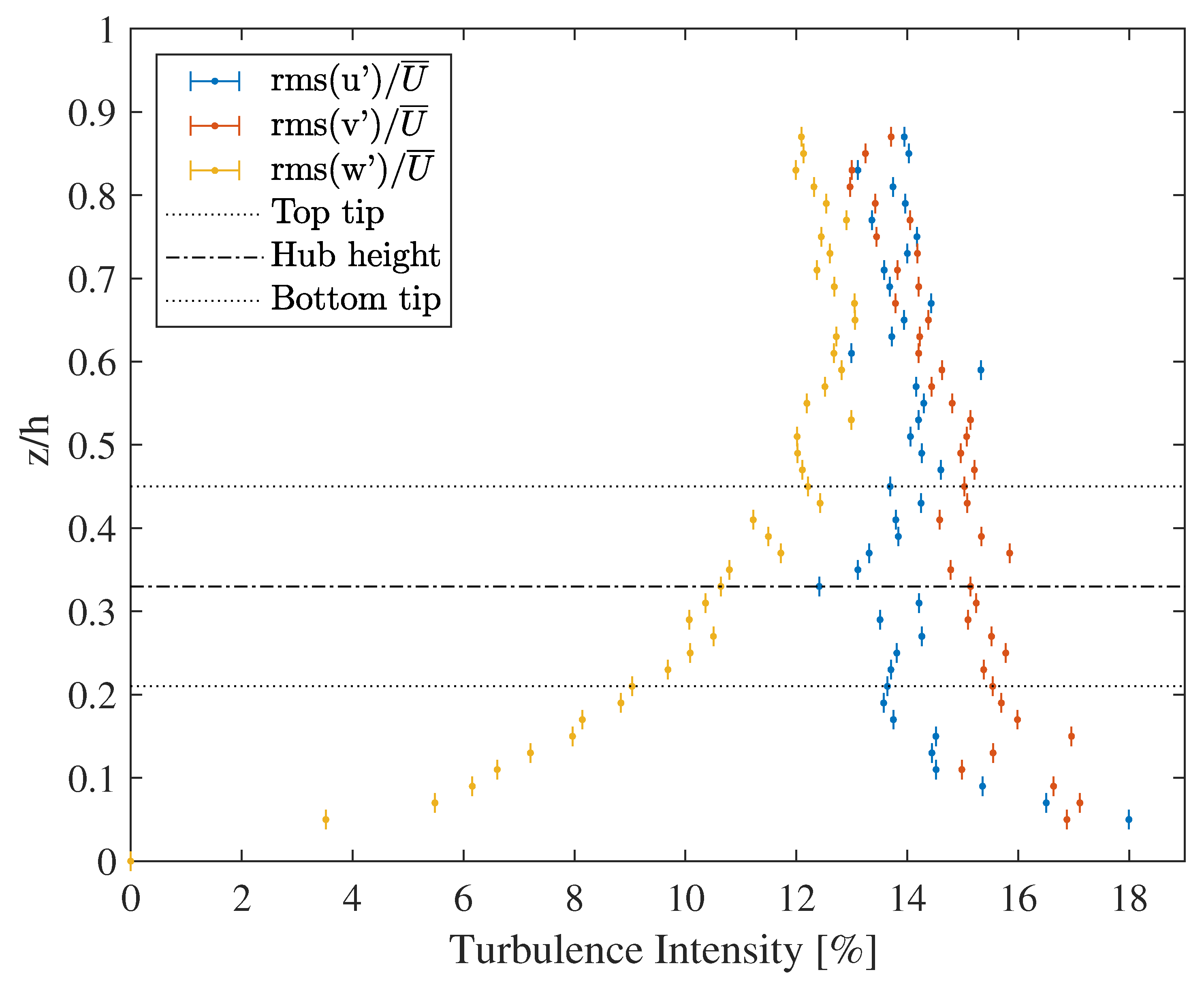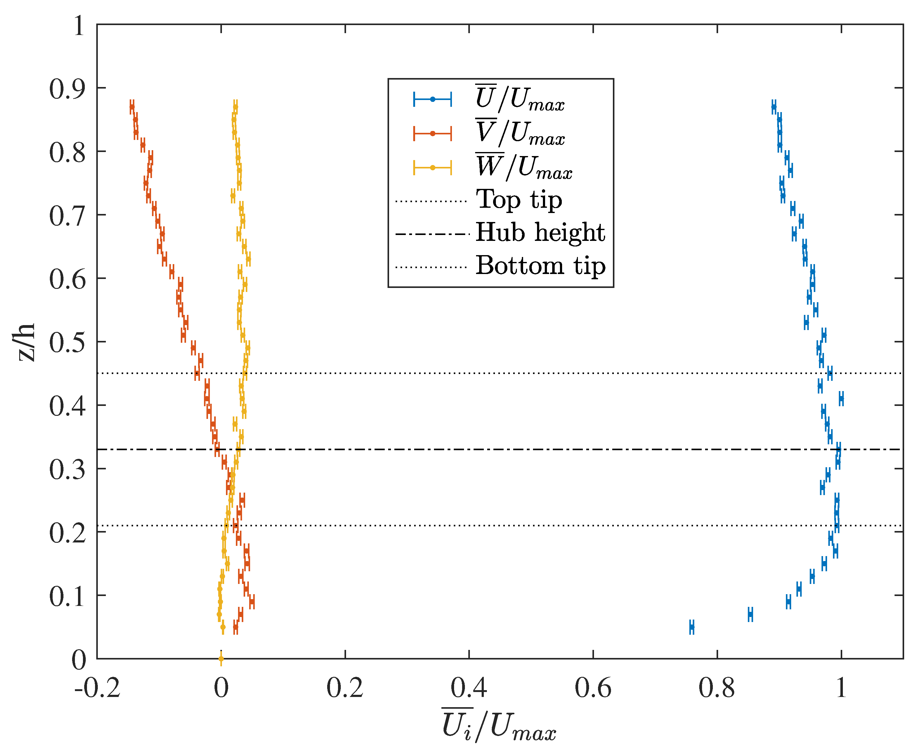 Figure 4, showing the time-averaged vertical profiles of the freestream mean velocity components (