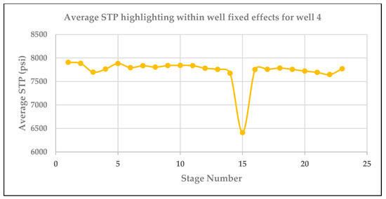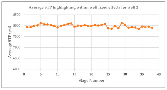 Pulling the FE term out of the error term allows for control of anything that may be correlated with the error term and an independent variable which causes endogeneity and bias [19]. FE may be thought of as taking a long list of variables, condensing them into one variable, and then controlling for that variable [21]. This means that they control for variation between wells [21]. Things like perforation erosion, geologic properties and structure, reservoir heterogeneities, natural fracture networks, etc., will play a critical role in STP. It is presumed that these characteristics that are inherent within a well will affect treatment and may be driving the differences in trends seen in Figure 2. However, FE allows us to control for the variation that can be expected between each well.