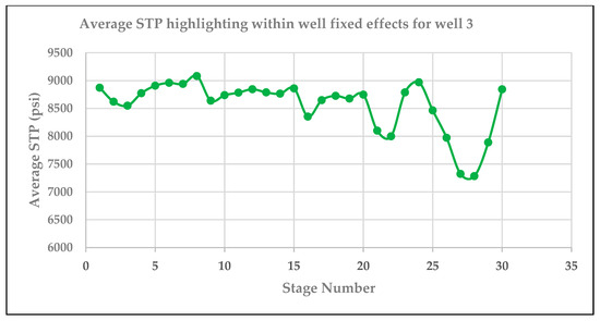 Haustveit, Elliot, and Roberts (2022) derived a novel solution to estimate net pressure using bottom hole pressure gauge (BHPG) data to measure poroelastic responses from stress shadows. Although the primary application from Haustveit, Elliot, and Roberts (2022) was to estimate net pressure, they observed a temporal dependence from poroelastic effects and net pressure from subsequent stages relative to a fixed BHPG at the toe of a well. They observed a diminishing temporal dependence since the measured poroelastic effect from stages 3–7 was measured relative to a BHPG fixed near stage 1 in the wellbore [31]. This makes sense intuitively as one would expect to lose serial correlation the further from the measuring device each sample was taken. Our study augments Haustveit, Elliot, and Roberts (2022) by providing an estimate of the temporal dependence on average STP from one stage to the next as opposed temporal poroelastic responses to a fixed point in the wellbore.