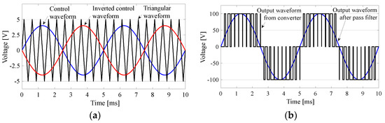For generation of the PWM waveform, the triangular waveform frequency is set to between 1.2 kHz and 20 kHz. However, it was found in [12] that the best performance of the PWM converter occurs at a switching frequency of 3.2 kHz. In the proposed resonant circuit, the frequency of the triangular waveform is set to be the same as that of the control waveform.