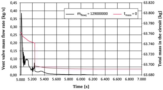 Vent valve mass flow rate and total mass flow in the circuit [].