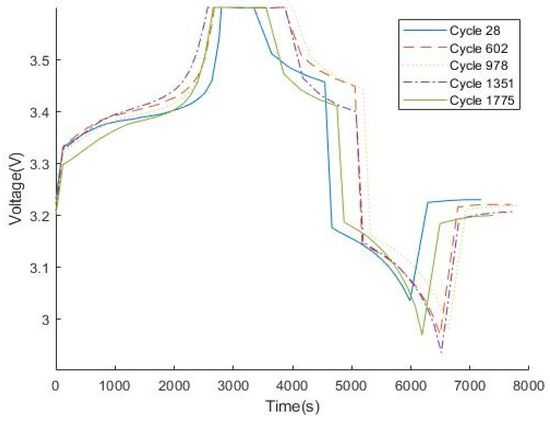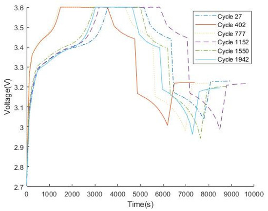 In this paper, since the voltage shows regular changes in different cycles, the voltage values at different time points are used to estimate and predict the battery’s capacity.
