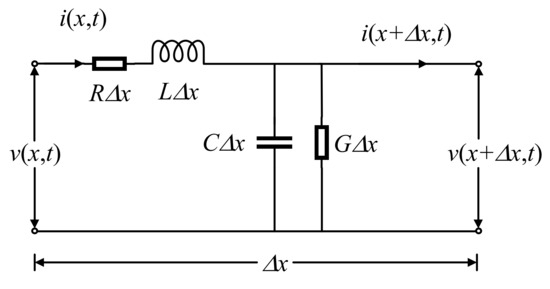 In (3), V+ and V− are called forward voltage waves and reflected voltage waves, respectively, and need to be determined by boundary conditions; γ and Z0 are the propagation coefficient and characteristic impedance of the transmission line, respectively, which can be presented in (4) and (5).