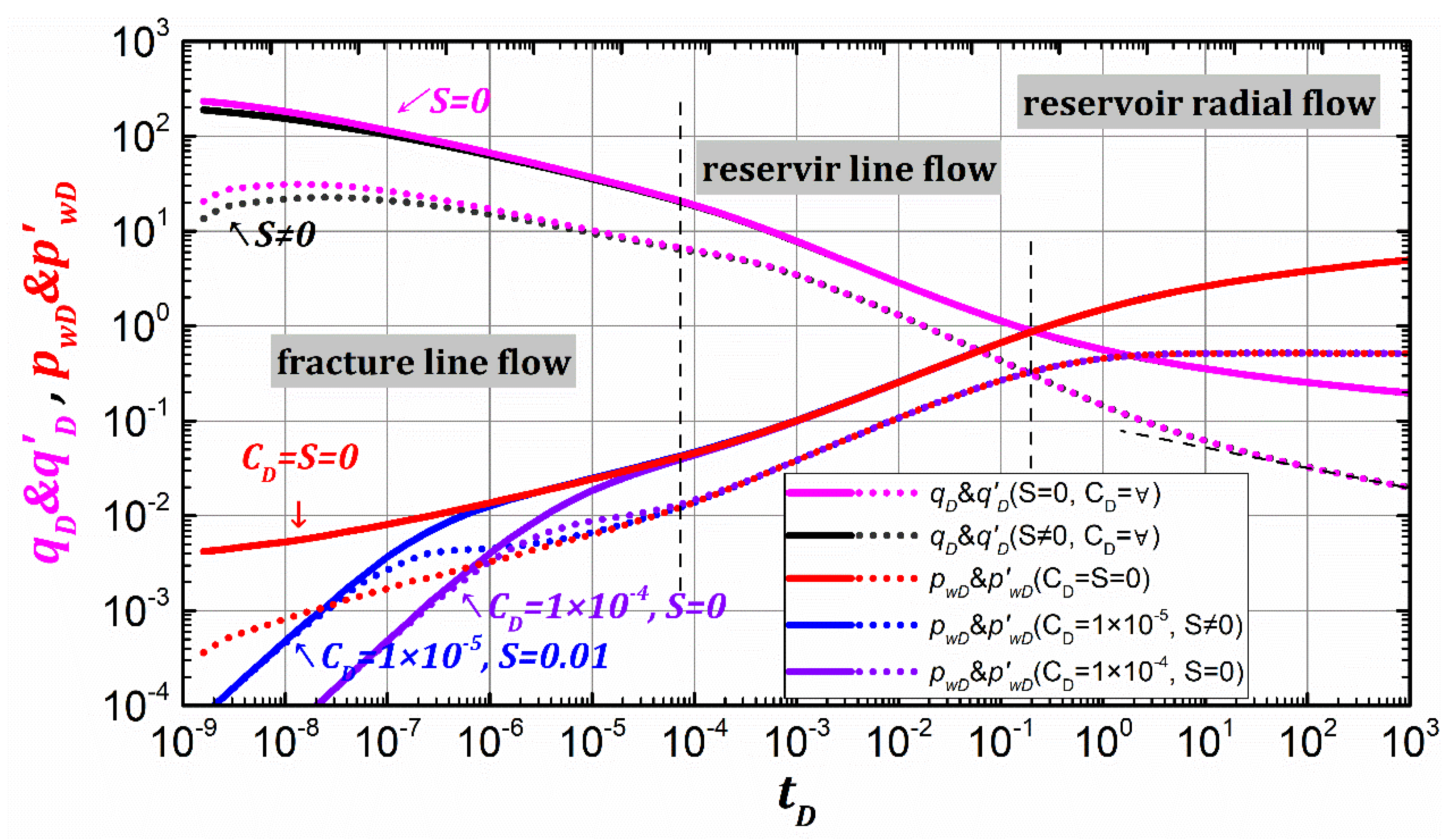 | Fracture line flow | m = 1/4, dp = log4 | m = −1/4, dq = log4 |