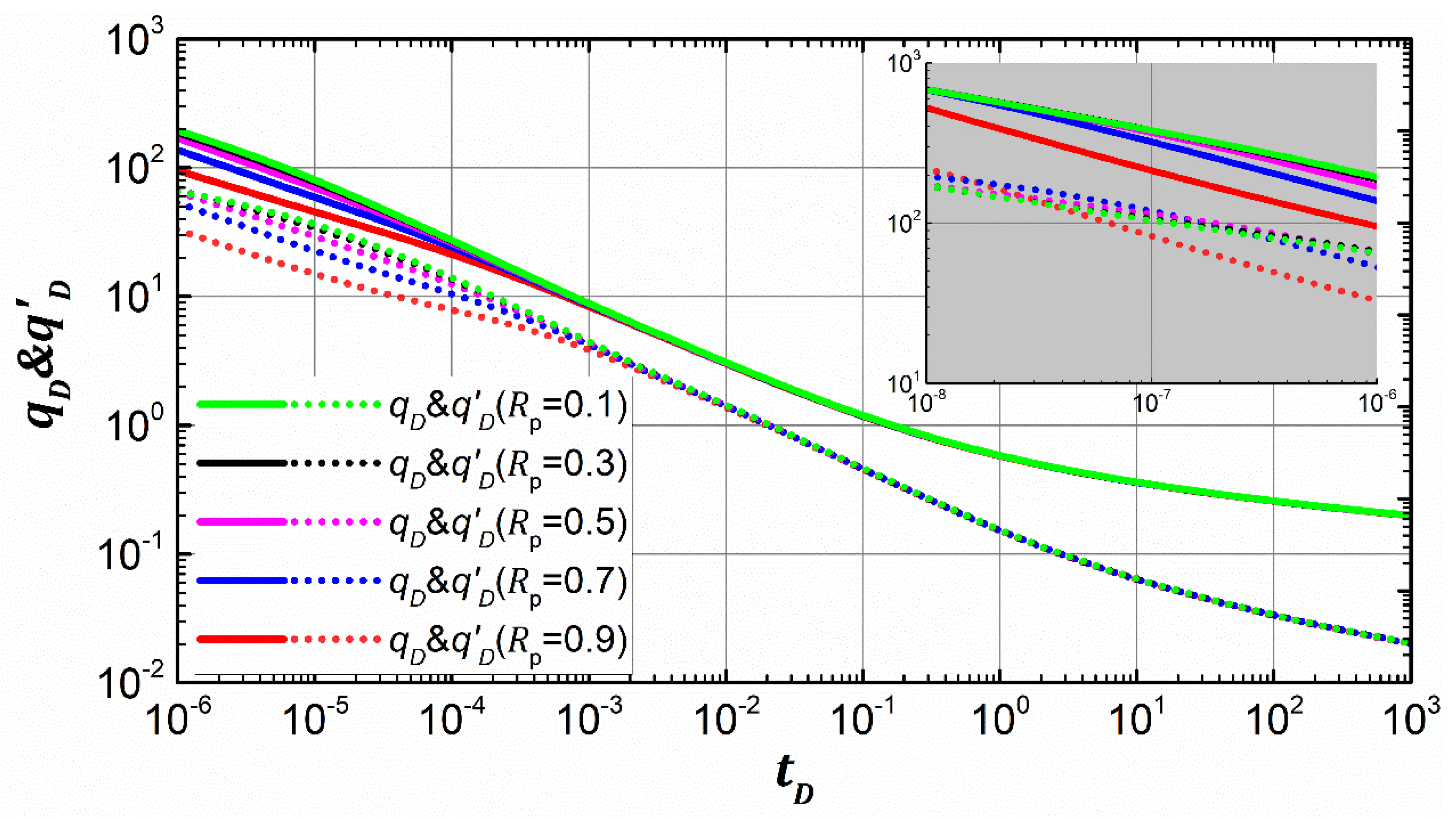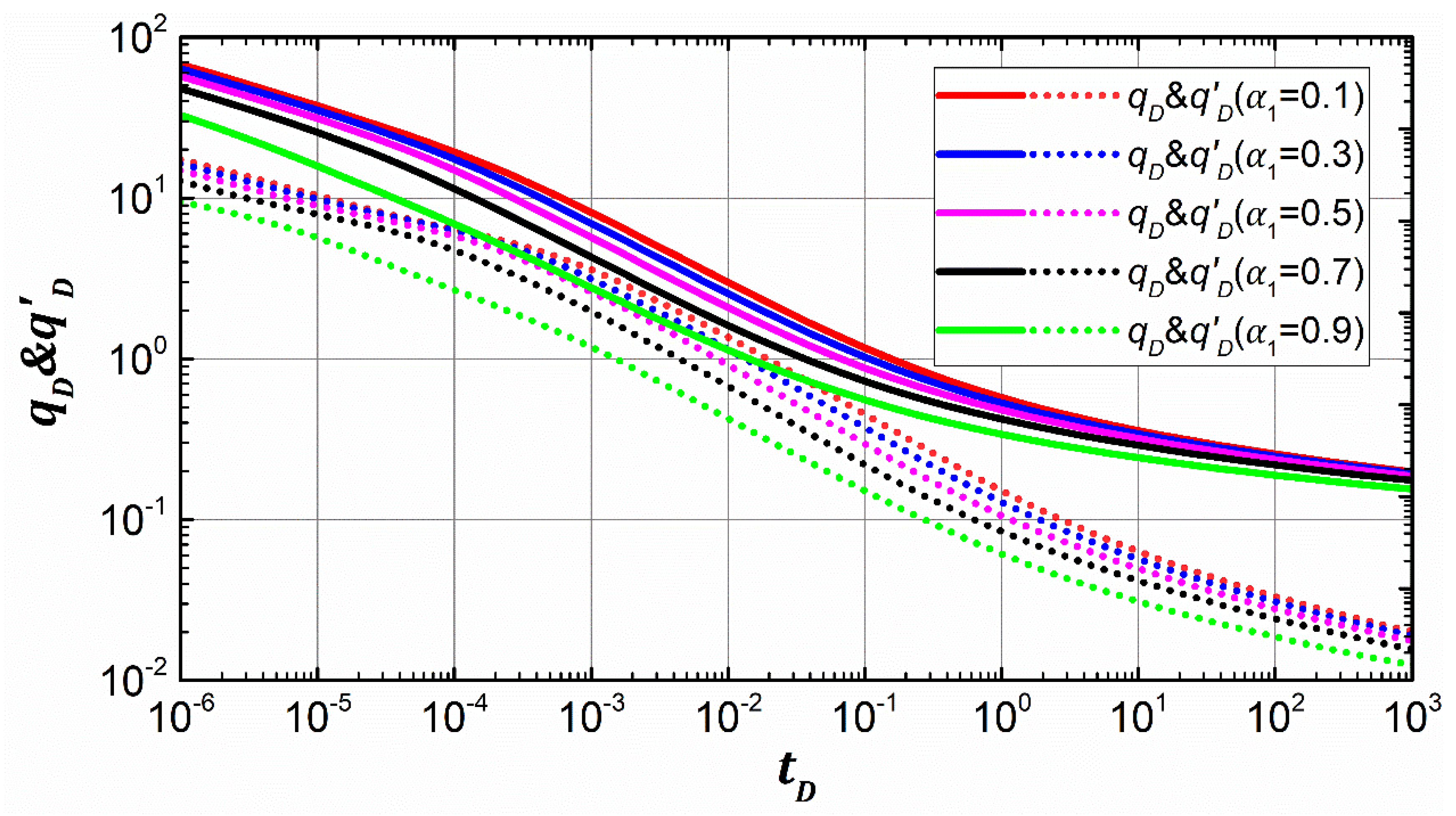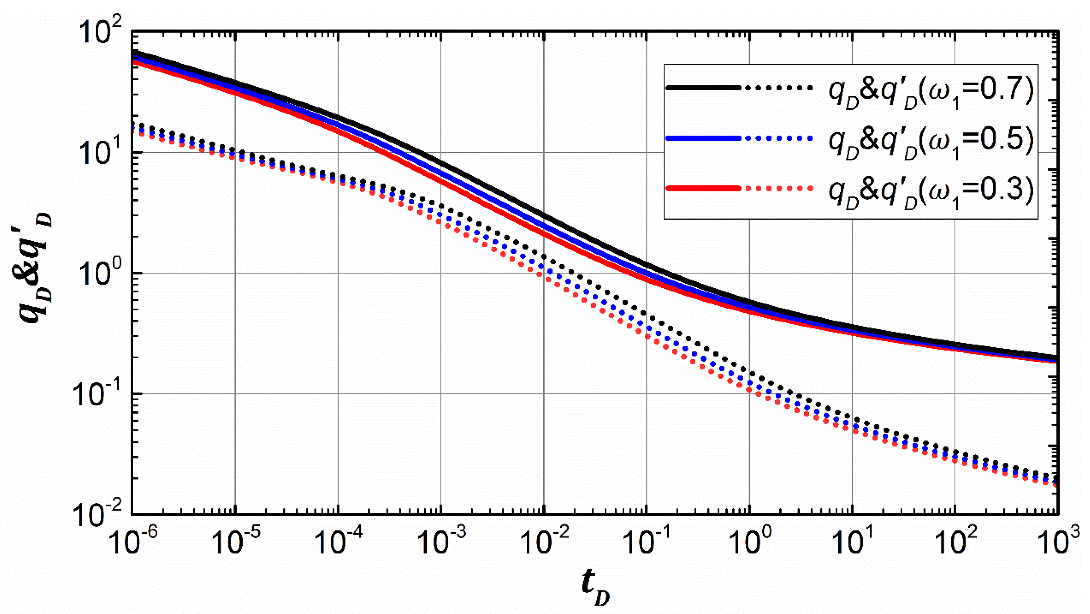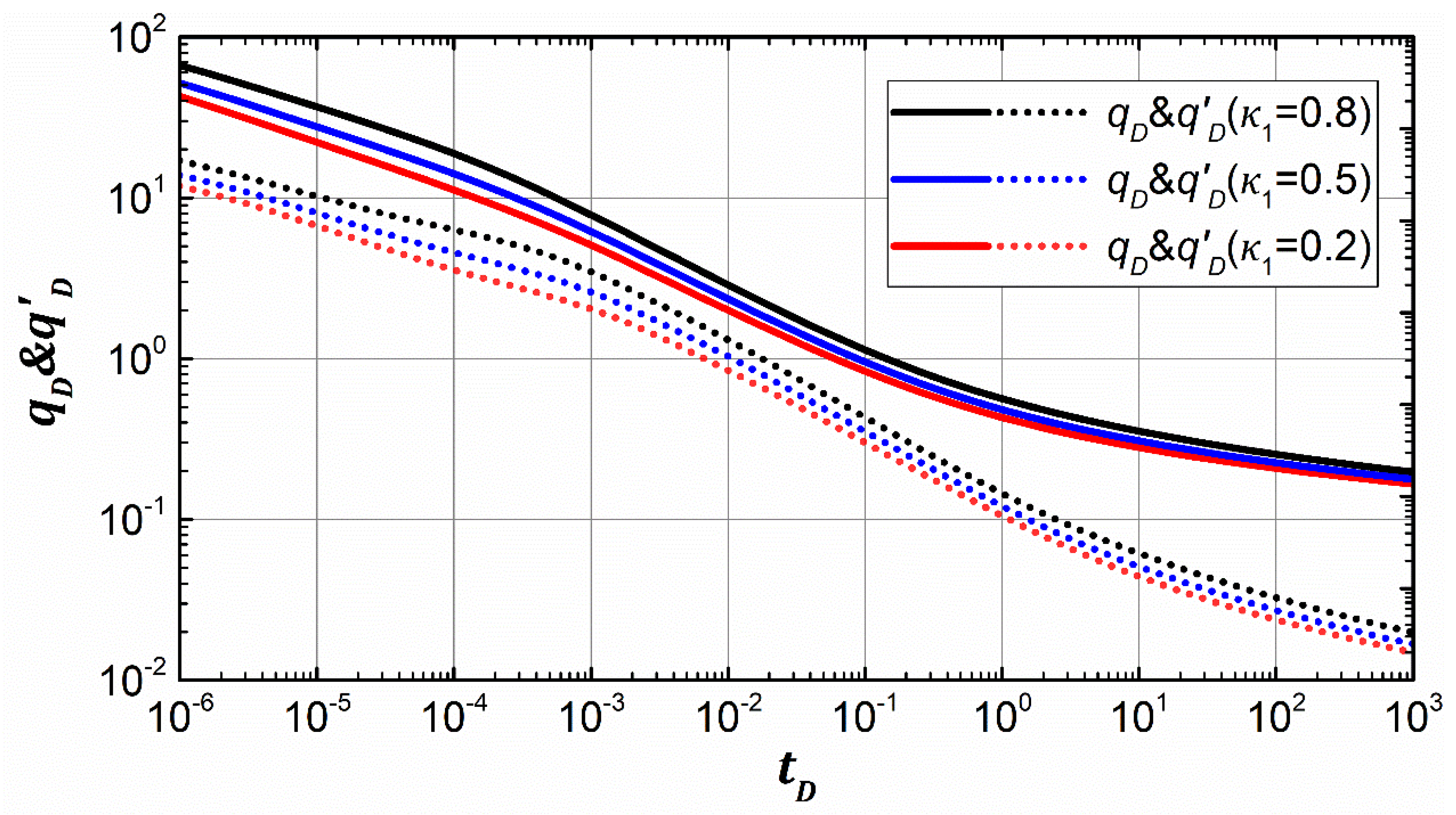 | Reservoir line flow | m = 1/2, dp = log2 | m = −1/2, dq = log2 |