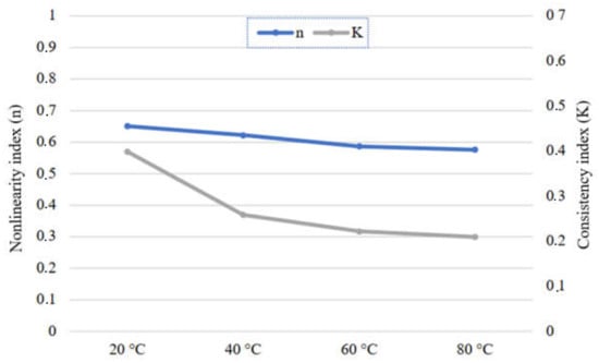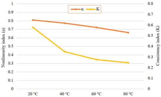 Non-linearity and consistency indices (K and n) were also evaluated based on the obtained rheological characteristics.