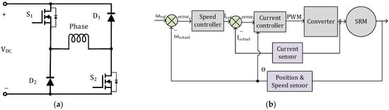 Figure 16 shows the drive and control system for the conventional SRM and the proposed SRM. SiC MOSFETs are used to create the driver as shown in Figure 16a. A dual-loop control system is used in the simulation and experiment. The current controller in Figure 16b is the hysteresis current controller. The speed controller is a PID controller.