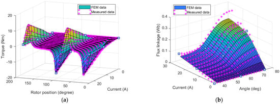 The FEM results and measured static data of the proposed SRM: (a) the torque; (b) the flux linkage.