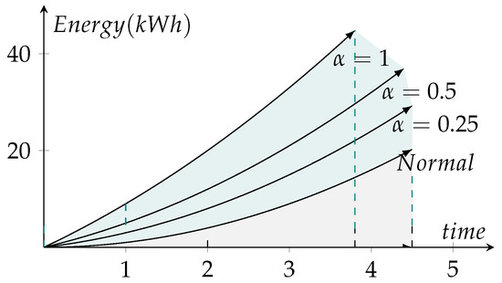 , the factor increases such as . Let us assume that is the time required to recover the charge, and W = . Here, is the power consumed when cryptojacking is active in . Assuming that is the cost of electricity in kWh then the total battery loss—the additional money in USD that all the EV owners pay due to cryptojacking—can be computed as