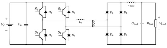 The voltage and power rating of the full-bridge rectifier will mainly be decided by the rating of the rectifier diodes. Power rectifier diodes for applications with higher voltage and power are available for voltage levels from a few hundred volts up to 10 kV and currents ranging from 1 A to 10 kA [40]. These diodes are, however, meant for applications with low frequency. For high-frequency situations, fast-recovery diodes are available, but with lower voltage and current ratings of up to 6 kV and 3 kA and higher expected conduction losses [40]. If a higher voltage and current rating are required, the diodes can be connected in series or in parallel [41].