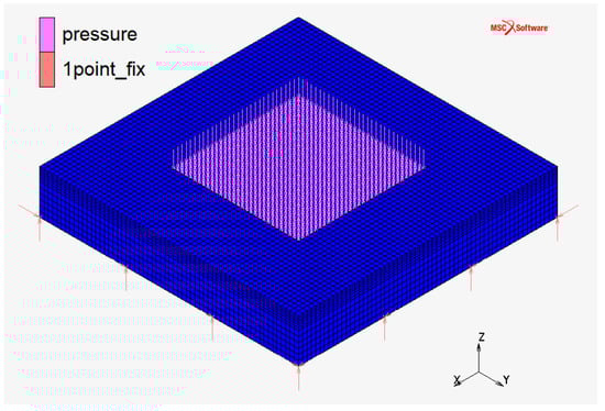 Additional nodes on the bottom surface of the plate were constrained to avoid plate rotation during the simulation; in particular, it was locked: