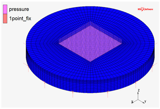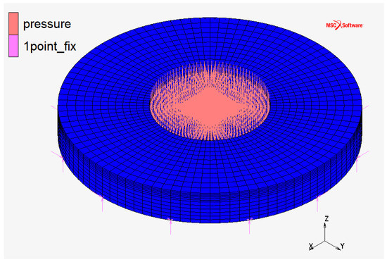 The comparison between geometries does not consider the bolts’ holes that ensure the system’s tightening: the plate was constrained by 3D pins placed at 12 points on the plate’s lower—not loaded—side. The number of 3D pins was chosen considering the perimeter of the plate.