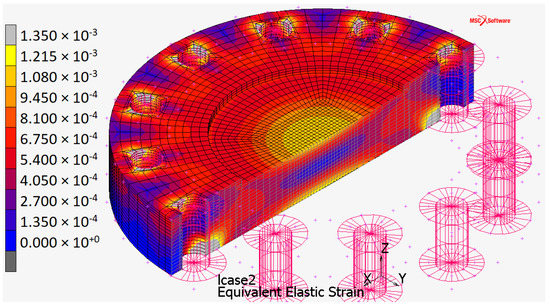 As the plate material and the number of constrained points cannot be changed, the only way to ensure a deflection lower than was to reduce the effective length of the plate as much as possible and to find its optimal (minimum) thickness. For this purpose, bolts’ holes and gasket’s groove that ensures the gas tightening of the system were taken into account.