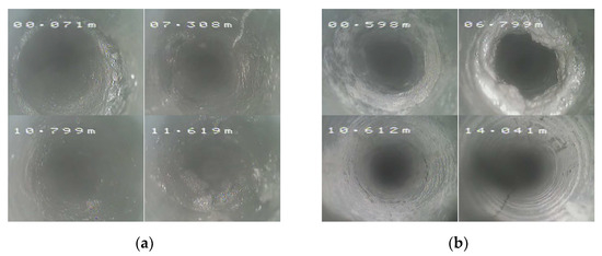 Borehole peephole views: (a) Conditions of borehole No. 1; (b) Conditions of borehole No. 2.