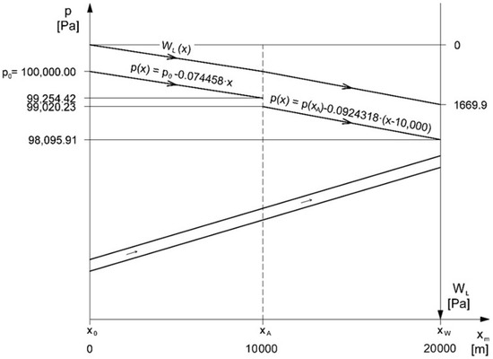 - The presented mathematical model allows for the determination of the static pressure distribution and mechanical energy loss in the conduit.