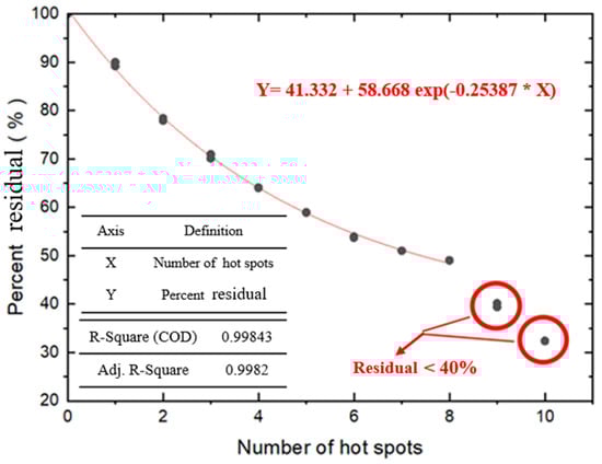 Residual Efficiency (%) = 41.332 + 58.668 exp (−0.25387 ∗ Number of Hotspots)