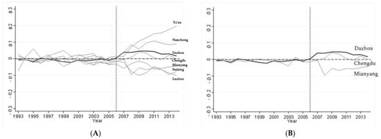 On the contrary, Dazhou, a prefecture-level city where the natural gas project is located, finds that the gas project positively affects local economic growth in the short run, but it is not sustainable. This finding is consistent with previous findings. As Deng et al. [37] suggested, the local economy may benefit from the outputs of the local natural resources in the short run. Isham et al. [41] indicate that the export of resources worsens the foreign trade conditions of a nation. Similarly, the local economy would also become worse in the long run.
