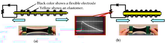 Larger elongation or output can be obtained by first pre-stretching the elastomer, called the pre-stretching method, and then attaching electrodes to it []. However, H. Kumamoto developed a small mobile robot that can be driven and deformed without pre-stretching of the elastomers []. S. Hayat et al. [] considered an electric supply driver for the DE actuator (DEA). It seems that their design concept could lack safety and their efficiency was a bit questionable. ZEON Corporation and others have developed a driver for the DEA []. Their drivers are capable of supplying high voltage accurately and quickly.