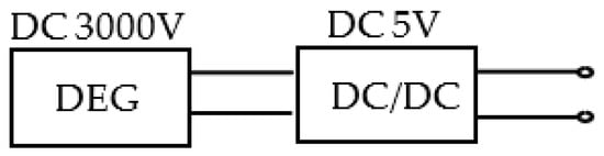 - TOREX DC/DC converterThe output from the small DEG device was stepped down to the rated input voltage of the DC/DC converter by a circuit using a capacitor, and then the voltage was made a constant by using a DC/DC converter (see Figure 10).