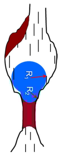 When the gas/oil interface of CO2 displacement encounters a lower permeability layer during the flow process, the radius of the gas flow channel becomes smaller and the capillary force acting as the flow resistance suddenly increases. Under this condition, the “gas resistance effect” occurs, also known as the Jamin effect which is demonstrated in Figure 10. The bubbles must be deformed to enter into the smaller pore/throat of the lower permeability layer. If the additional resistance generated during the deformation process is greater than the resistance for entering into the pore/throat in the same layer, CO2 will preferentially enter into the other pore/throat in the same layer for oil displacement. Therefore, the phenomena “wait” and “interface self-adjustment” will occur when the size of the remaining unswept pore/throat in the co-permeable layer is equivalent to the pore/throat size in the relatively lower permeability layer, the gas “starts” to enter into the lower permeability layer for oil displacement.