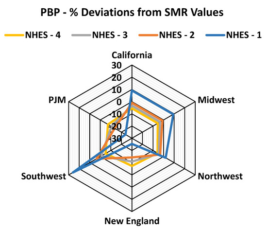 Percentage deviation of PBP for different NHES scenarios from SMR values.