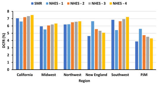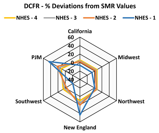 Percentage deviation of DCFR for different NHES scenarios from SMR values.