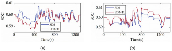 Terminal SOC curves under different driving cycles. (a) CHTC-B; (b) WVUCITY.