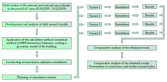 The material and construction solutions of buildings have a significant impact on the internal microclimate and thermal comfort of people staying inside them, as well as on the interaction with the external environment [1,2,3]. Depending on the purpose, buildings are characterised by different materials and construction solutions [4,5,6]. However, the overriding goal is always to ensure an appropriate internal microclimate that has a direct impact on the people inside, animals or elements constituting interior furnishings [7,8,9,10]. The microclimate of the interior is mainly determined by the multidimensional heat and humidity phenomena. The quality of indoor air is also very important, as it has a direct impact on the comfort of users but can also affect interior elements [11].