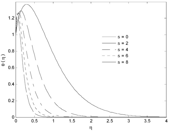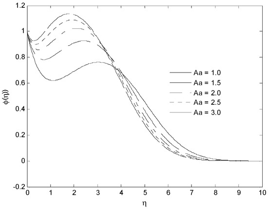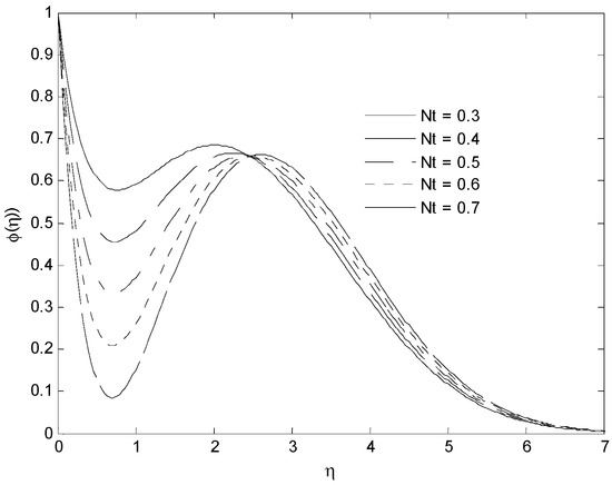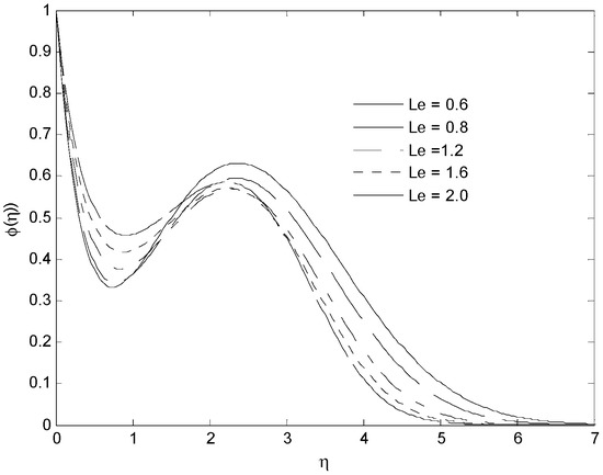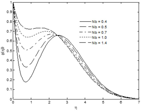 - For higher values of , , , , and the nanofluid mass transfer is increased, but the reverse performance was found for , , , and, .