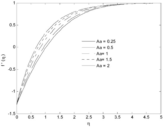 - It was distinguished that the nanofluid velocity was amplified for hiking values of , , , and .