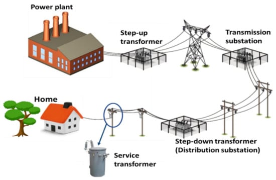 In the power system, transformers are one of the key components [1]. Some of the main reasons for failures include leaking oil, broken insulation, overload, voltage spikes, and unbalanced loading. Consistent failures could shorten transformer life or cause power outages [2,3]. For those reasons, effective methods need to be developed to keep track of the overall transformer’s condition so that the failures and degradation can be proactively mitigated by the operators, helping to increase the reliability of power quality and reduce the operations and maintenance cost for utilities. There are four main types of transformers in the power system, which are shown in Figure 1.