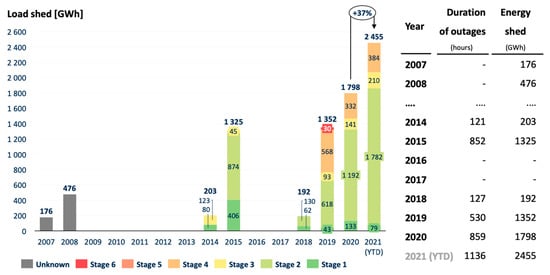 - CSIR. Load Shedding Statistics. December 2021. Available online: https://www.csir.co.za/load-shedding-statistics (accessed on 17 July 2022).