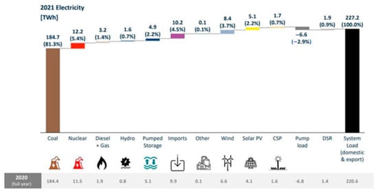 It can be observed that coal generation is yet the main electrical power source, responsible for approximately 81.4% of the power fed to the grid, succeeded by renewable energy sources, viz., solar and wind—responsible for approximately 6.7%. The increase in the deployment of renewable energies will aid in curbing not only the emission of greenhouse gases but also the dependency on coal generation and reduction in load shedding. Commercial activities will be able to continue their operations with investments in BESS-PV scheme.
