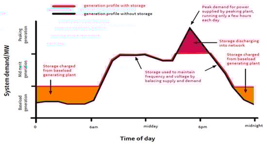 Energy storage completes load smoothing produced by the intermittence of wind and PV networks [46]. In this operation, within minutes, there is a load ramp support to react to a fast or at random floating load outline [46]. Consequently, renewable energy production can be controlled, smoothed, and expeditious, particularly in distant areas [46]. Additionally, diverse modes of process must merge to reach feasibility, for instance, energy quality control, load supervision, and others are considered next [46].