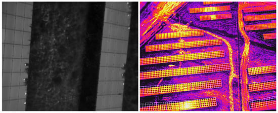 As a result of flying over a large farm, a considerable amount of photographic material is produced: the authors’ experience shows that per 1 MW there are 600–700 thermographic images (in resolution 640 × 512), and the total amount of data exceeds 5 GB (the camera usually also takes regular pictures in a higher resolution).