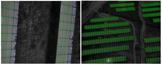 Several methods have already been proposed to address this issue. While older works used human expertise [] and digital signal processing [,,,,] or parametric models of a PV module [], the recent research trends tend to use a variety of machine learning tools such as traditional artificial neural networks [,,] and support vector machines [,,]. The introduction of deep neural networks has substantially changed the quality of automatic detection. Most recent works present applications of different deep (convolutional) neural networks (DNN or CNN) to the problem of automated evaluation of solar facilities. The actual review of almost 180 related papers can be found in []. The approaches are classified into two groups: algorithms based on digital image processing (DIP) and deep learning (DL) approaches. In both groups, we can find methods whose claimed accuracy reaches 100% [,]. However, according to the authors of this work, such results should be approached with great skepticism due to the huge variability of the data that such algorithms process. This variability is due to the different conditions under which the images can be taken, the variability of the equipment and its settings, and the qualifications of the UAV operator. Of course, we do not deny that the presented algorithms may achieve 100% accuracy on the data used in their preparation process (for example, deep learning). Still, this high accuracy on training data suggests that such an algorithm will achieve very good results when processing new data, as long as they are similar.