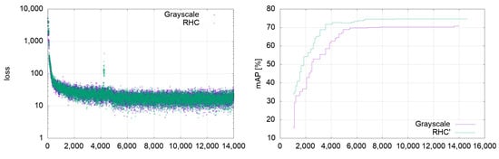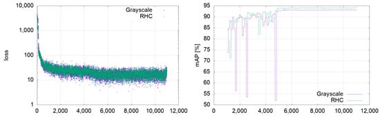 We have tested two sets of images: temperature converted to grayscale and temperature converted to RHC. The training process shown in Figure 17 was similar, but the RHC scale produced a slightly better mAP index. The results metrics obtained for all classes in the second set of experiments are compiled in Table 5.