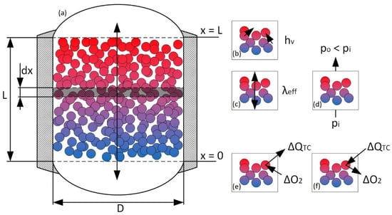 Figure 2 visualizes the packed bed storage and summarizes the thermal, fluid mechanical and thermochemical processes. Additionally, the TES dimensions are depicted as they are used for spatial discretization and boundary conditions.