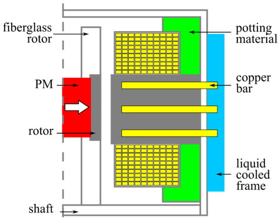 - Polikarpova, M.; Ponomarev, P.; Lindh, P.; Petrov, I.; Jara, W.; Naumanen, V.; Tapia, J.A.; Pyrhonen, J. Hybrid Cooling Method of Axial-Flux Permanent-Magnet Machines for Vehicle Applications. IEEE Trans. Ind. Electron. 2015, 62, 7382–7390. [Google Scholar] [CrossRef]