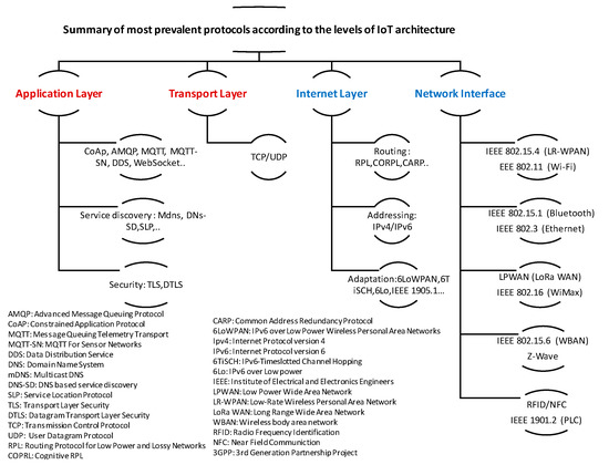 Summary of most prevalent protocols according to the levels of IoT architecture.