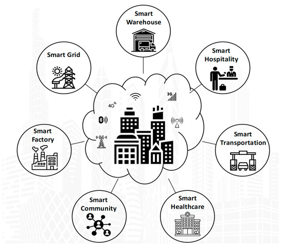 The term “smart city” refers to an urban environment that uses smart technologies and data analysis to optimize city functions [122]. Smart and green living is a top priority for governments around the world as they seek to enhance physical infrastructure, protect the environment, strengthen the economy, achieve energy efficiency and increase the quality of life for citizens [123]. The digital city and information city are concepts that have all benefited from the initial integration of ICT into city operations. Recently, IoT led to the creation of “smart cities” that support city operations with minimal human intervention [124]. Smart sensors and contextual systems can assist in the development of future smart cities, however, there are a wide range of challenges, including the need to improve the energy efficiency of various city components.