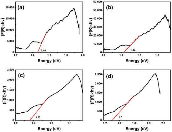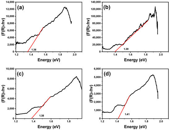 Bandgap of S samples: (a) S1; (b) S2; (c) S3; (d) S4.