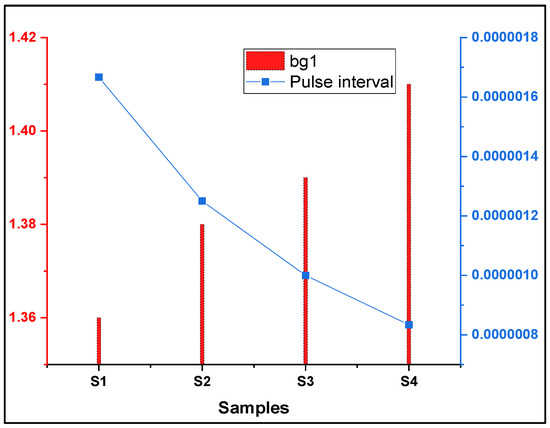 Relationship of bandgap and pulse interval in the S samples.