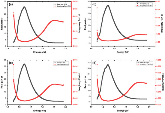 Dielectric constant of A samples: (a) A1; (b) A2; (c) A3; (d) A4.