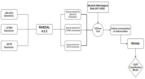 Recently, decision support systems (DSSs) have been observed as a key strategy for enhancing security and safety measures during emergency nuclear emergency operations. These tools support decision-makers in identifying accident patterns and taking appropriate protective steps. DSSs are particularly pivotal in the planning phase of the emergency response [4,5]. They are also highly connected to artificial intelligence, a technology that uses algorithms to produce accurate insights from amassed data. These attributes help reduce human error while dealing with nuclear reactors during anomalous situations at nuclear power plants. Hsieh et al. also report that DSSs minimize decision-making time by 25% and improve operators’ decision-making accuracy by 18%, especially in the case of abnormal events in a power plant [6]. Furthermore, DSSs reduce the amount of information an operator should consider to make accurate decisions in dealing with anomalies at a power plant. This relevance motivated our study’s use of a decision-making tree built from the Classification and Regression Tree (CART) model.