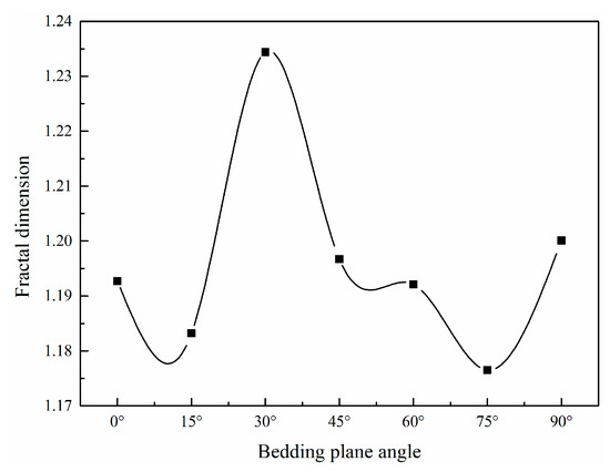 The BCD method was used to calculate the FDs of fractures at different BP angles (Figure 10). The FDs at a BP angle of 30° were significantly higher than those at other angles, indicating that the fractures at 30° were the most complex and that the fracturing effect was the best.